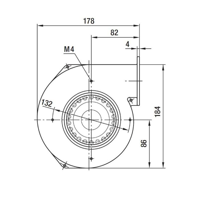 Centrifugalni ventilator EBM - PAPST G2E120-AR77-01 z motorjem M2E068-BF za peči na pelete. Ta kompakten in zanesljiv ventilator je namenjen visokim temperaturam.